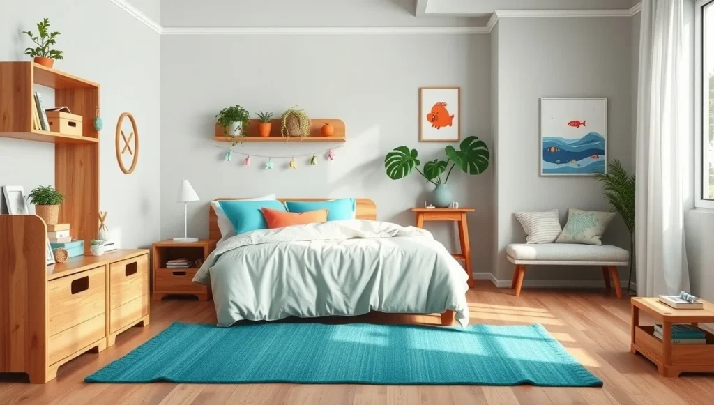 Children go absolutely nuts for tropical themes, which works out great. Start with stuff that can take a beating – bamboo toy boxes, soft rugs that can go in the washing machine, cotton bedding in fun ocean colors. I like to put one small plant up high where little hands can’t reach it, and maybe some cool ocean or jungle artwork on the walls. Build them a little reading corner with floor cushions and they’ll think they have their own secret hideout.