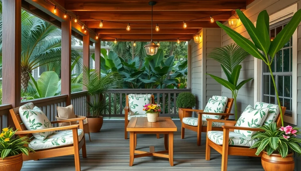 This is where tropical design really shines because you’re already outside. Teak furniture holds up to weather like nothing else, but it costs a fortune. Aluminum with thick cushions in tropical prints works almost as well for way less money. String up some lights for nighttime ambiance, and go crazy with the planters. Palm trees, flowering plants, whatever makes you happy. This is your outdoor room, so treat it like one.