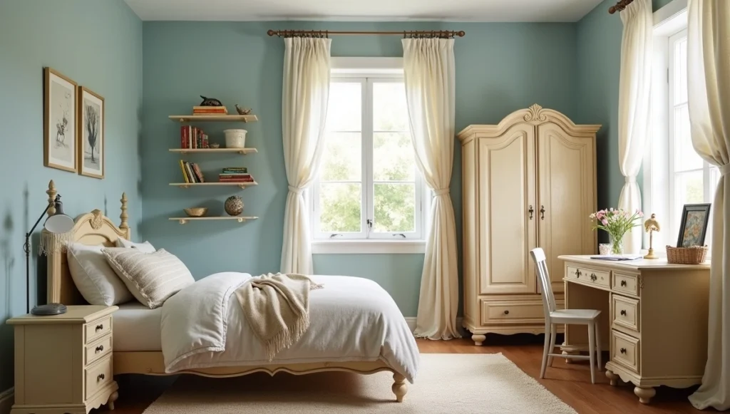 Now I start with colors that’ll work whether they’re seven or seventeen. Soft blues, gentle greams, maybe a pale yellow. Then I add character with furniture that can grow with them, like a good wooden bed, storage that doesn’t scream “toy box,” maybe an old desk where they can do homework for years.