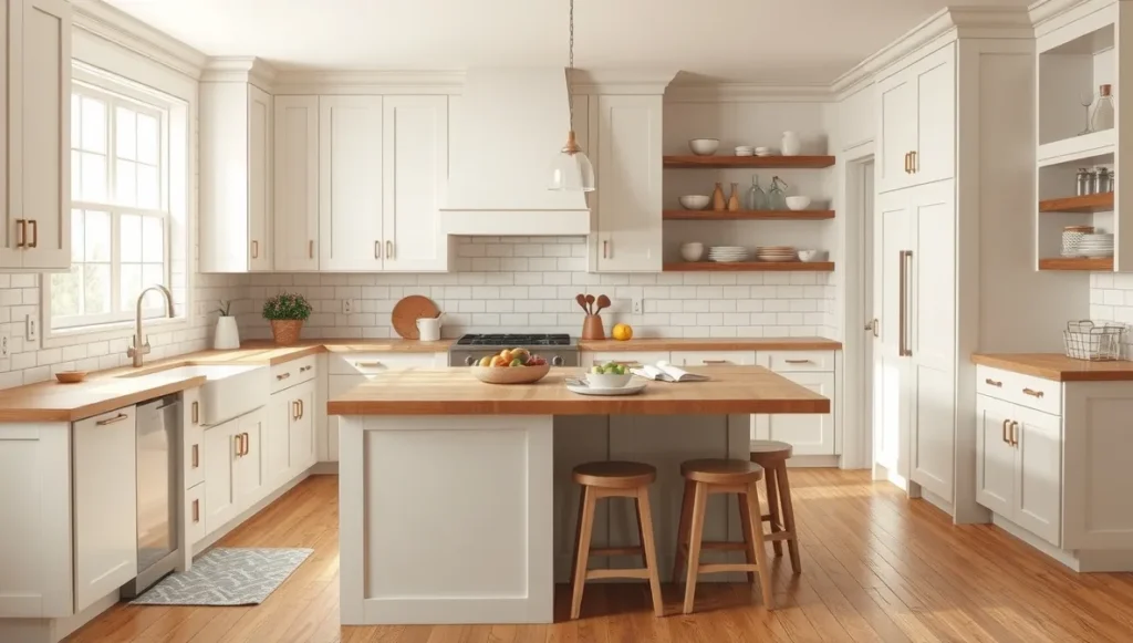 Open shelving photographs beautifully but be realistic about maintenance. Most families need closed cabinets for hiding the random collection of takeout containers and mismatched storage bowls that accumulate over time.