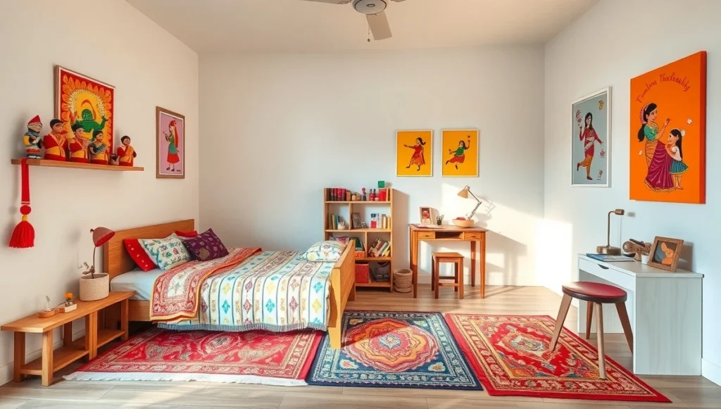Kids’ rooms should celebrate being Indian while giving children space to be themselves – colorful textiles, traditional toys as decor, artwork celebrating festivals.