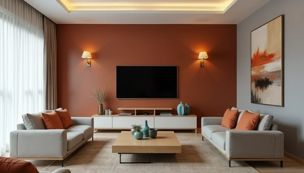 I recently worked on a living room with the rust-soft gray color combination – take a look.