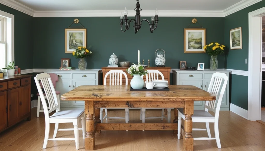 Sure, those soft greens and dusty pinks work beautifully. I’ve used variations of sage green in probably half my projects this year. But some of my favorite spaces lean darker. Remember that forest green I mixed for the Johnsons’ dining room? It made their pine table look like it had been there for generations.