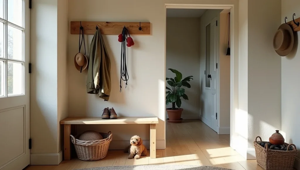 Most design articles skip this, but your entryway sets expectations for everything else. I put a weathered bench there – something sturdy enough to actually sit on while pulling off boots. Hooks on the wall for real coats, not just decorative scarves. A basket for mittens and dog leashes and all the random stuff that lives by the door.