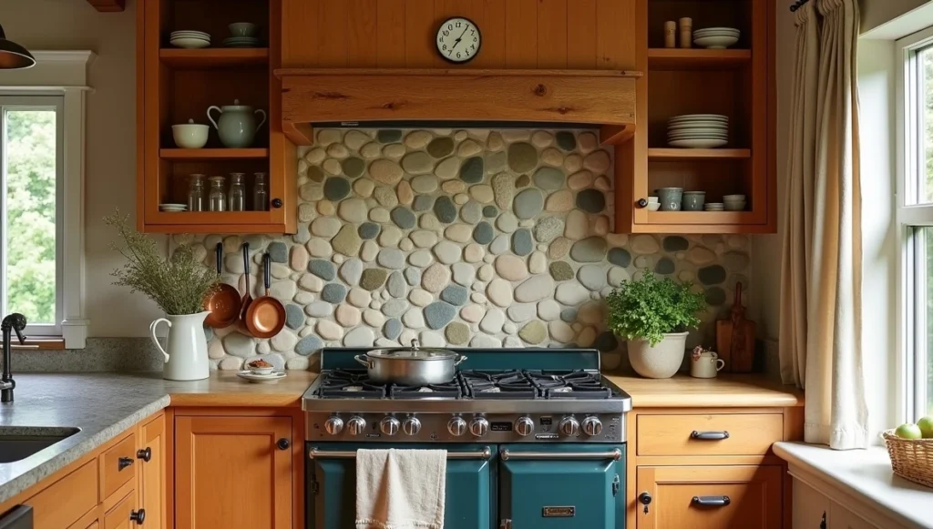 Stone is my splurge recommendation when budgets allow. Nothing – and I mean nothing – gives a space that permanent, rooted feeling like natural stone. Even small touches make a difference. I just finished a kitchen where we used river rock for a backsplash behind the stove. Cost maybe $200 in materials, but it looks like the cottage grew around it.
