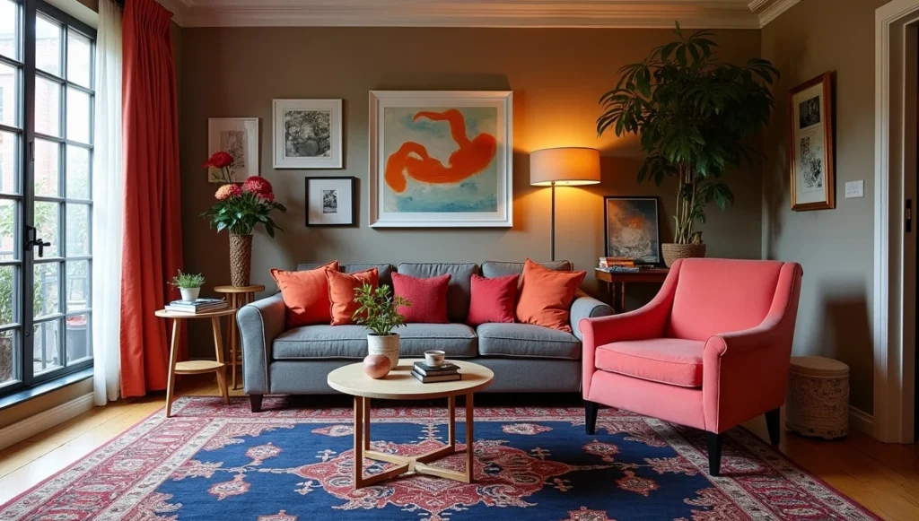 Take my client Sarah’s living room disaster turned triumph. She had this gorgeous coral vintage chair that her husband hated and a navy rug she’d inherited from her mother. Instead of making her choose, we made coral and navy our power couple. Suddenly that mix of modern and traditional pieces started talking to each other instead of arguing.