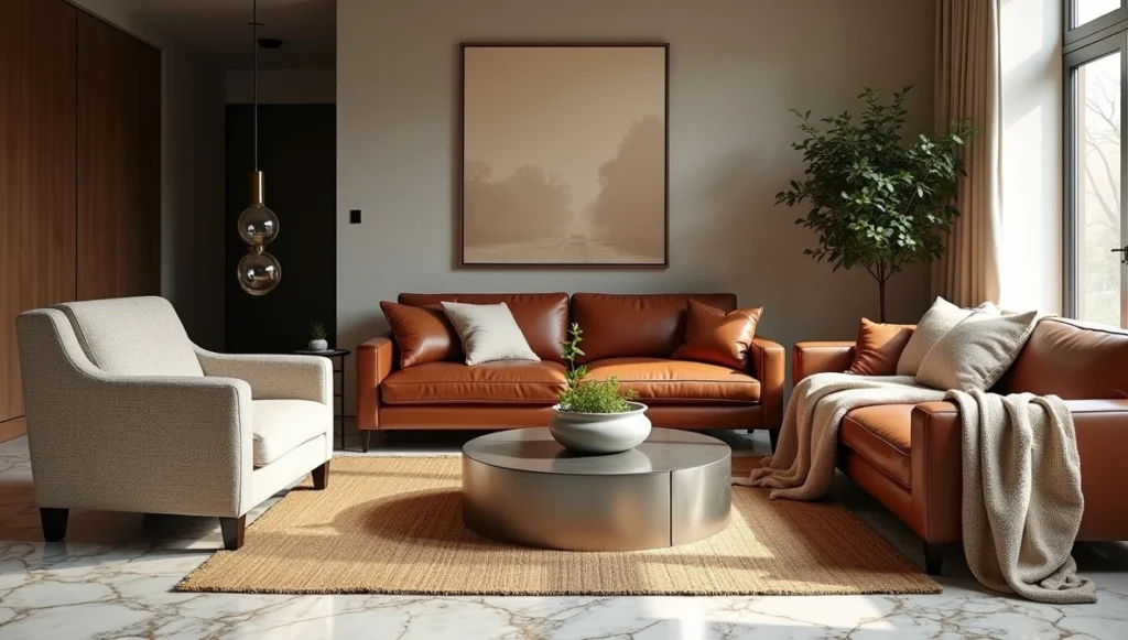 Three different types of seating always works better than matching sets. Right now I’m obsessing over pairing sleek modern sofas with vintage leather chairs and maybe throwing in a funky ottoman. The coffee table is where you can really have fun – I just finished a project where we used an old door on hairpin legs next to the client’s fancy contemporary couch. Sounds weird, looks amazing.