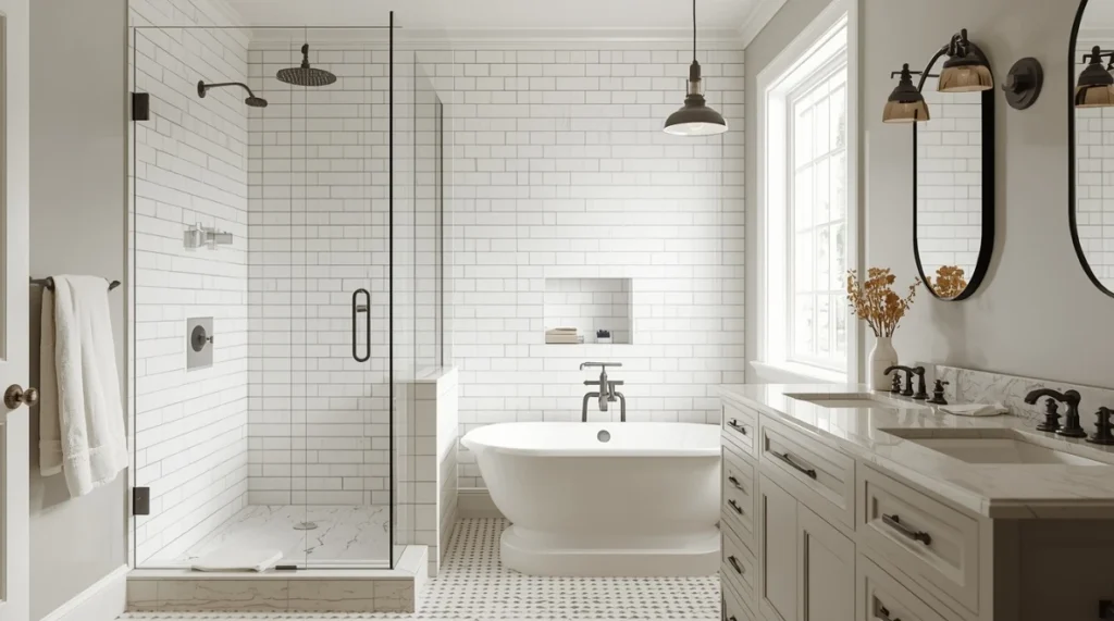 Bathrooms are expensive to renovate, so choose elements that won’t look dated quickly. Classic subway tile with contemporary grout colors. Traditional fixtures with updated finishes. A vintage-inspired vanity with modern hardware.