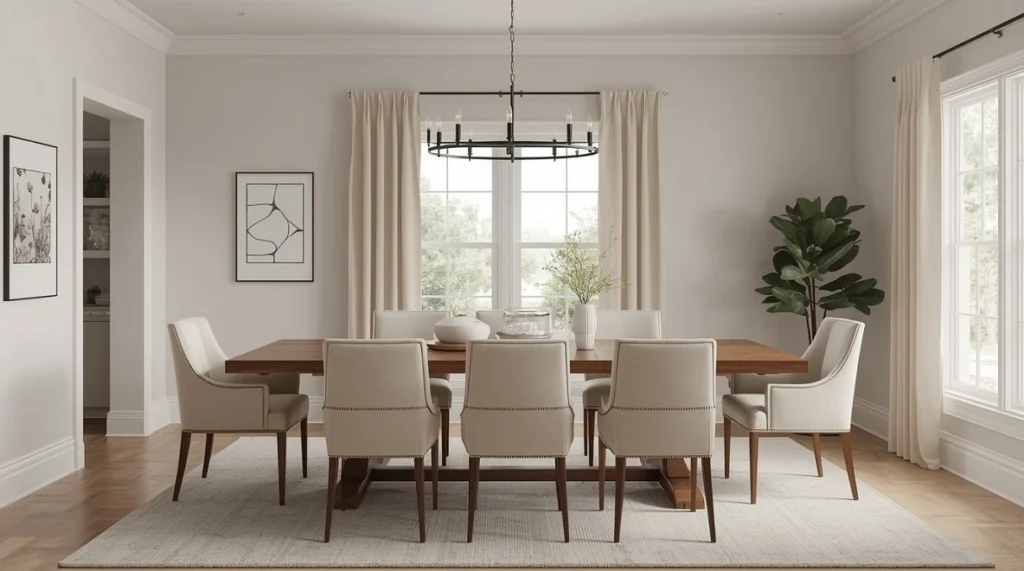 The key is making it work for both fancy dinner parties and Tuesday night takeout. Maybe a classic wooden table that can handle kids’ homework, paired with chairs that are comfortable enough for long conversations but nice enough for holidays.