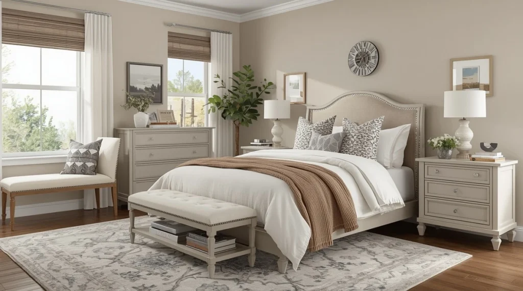 There’s this one gray I use constantly – Benjamin Moore’s Revere Pewter. Sounds fancy, but it’s basically the perfect not-quite-gray, not-quite-beige color that works with everything. I’ve probably used it in thirty different projects, and it never gets old. Here’s the room I completed recently for one of my client.