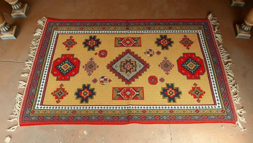 I remember sitting in a small village outside Marrakech, watching a craftsman weave a rug using techniques his grandmother taught him. Every knot told a story. Every color choice had meaning. That’s tribal design. Here’s the picture of that beautiful rug I captured – take a look.