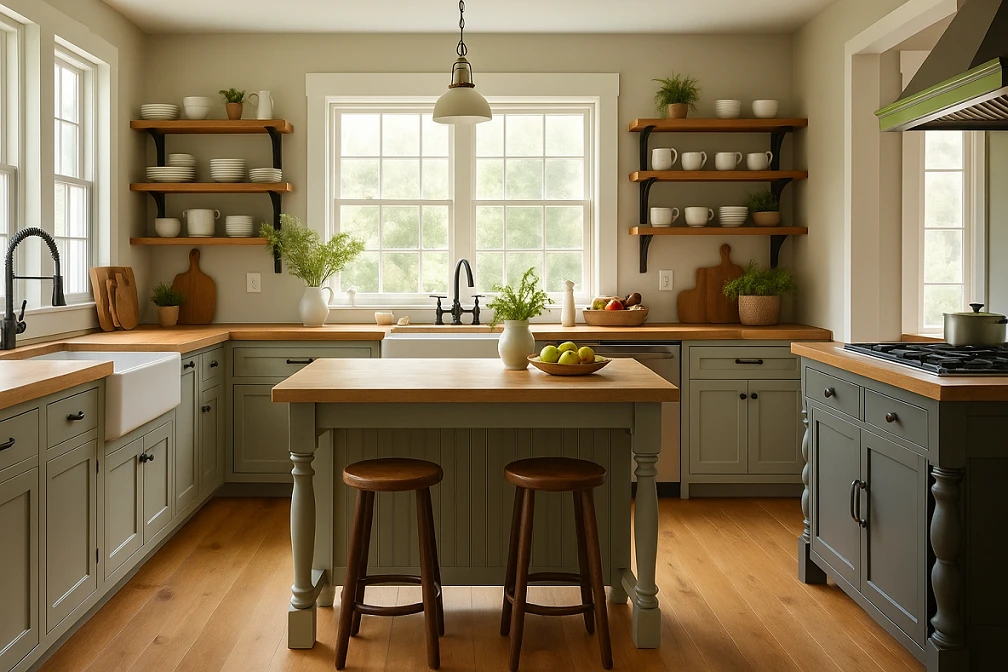 Shaker cabinets are my go-to. Simple, sturdy, no weird details that’ll look dated in five years. And please, get decent hardware. Those tiny knobs that were everywhere a few years back? They look ridiculous on substantial farmhouse cabinets.