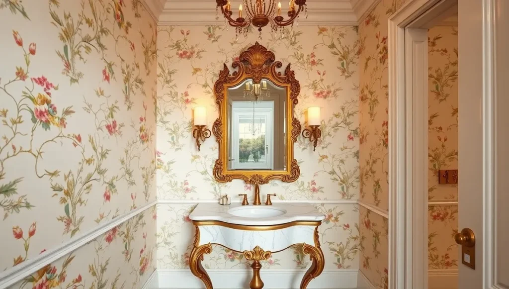 Gorgeous wallpaper with hand-painted scenes? Do it. Mirror that costs more than some people’s monthly rent? Worth every penny. Crystal sconces that make you feel like royalty when you’re just washing your hands? Absolutely.
