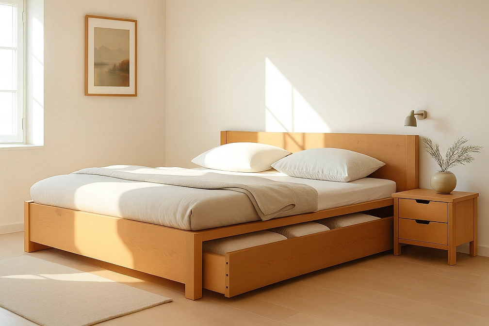 Same with bed storage…those lift-up platform beds are so obvious. Rather look for designs where storage is built into the frame sides or headboard. Way more elegant.
