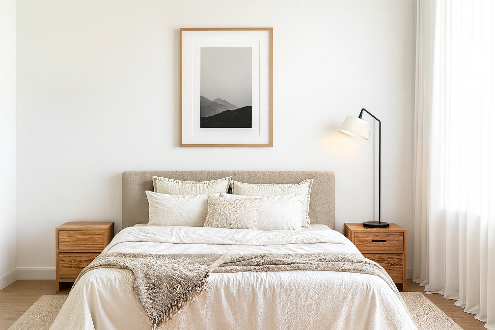 I also just finished this bedroom with Benjamin Moore “Cloud White” (way warmer than regular white) paired with natural linen and one piece of black and white photography. Feels calm but not like a hospital. Oh, and here’s something nobody tells you, is that the paint samples look completely different in your actual space than in the store. Buy the small sample cans and paint actual squares on your walls. Worth the extra twenty bucks to not hate your walls for the next five years.
