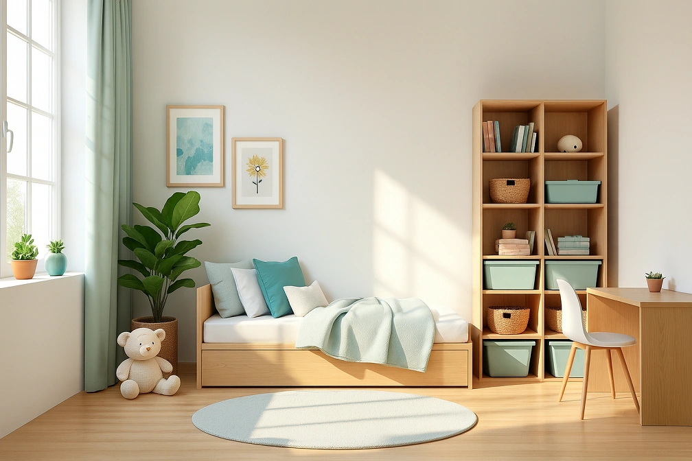 Kids don’t need every toy they own visible at once. Rotate them, as they’ll actually play with stuff more when there’s less overwhelming choice. Storage at kid height so they can actually put things away themselves. High shelves just mean you’re doing all the cleanup forever. Let them pick one accent color. They’ll take better care of a space they helped design.